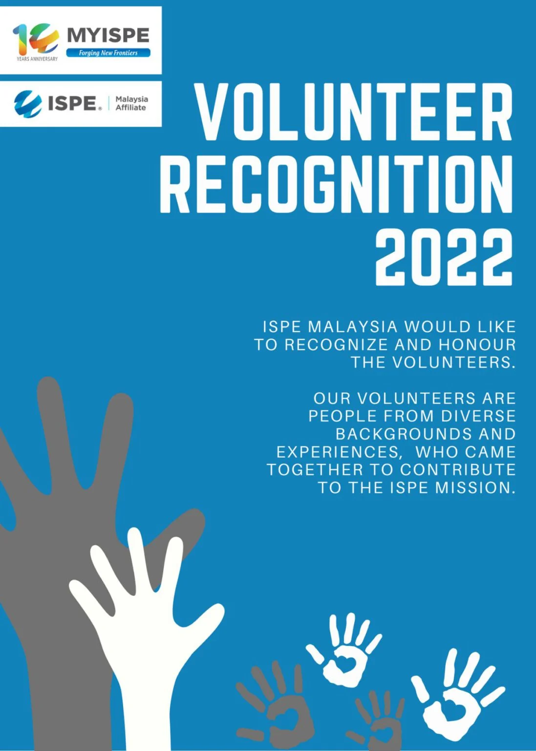 We want to recognize and thank the volunteers for lending their time, effort and talents in growing this inclusive community. Volunteers will be nominated by the ISPE EXCO committee, featured on our website and our annual AGM event in July.